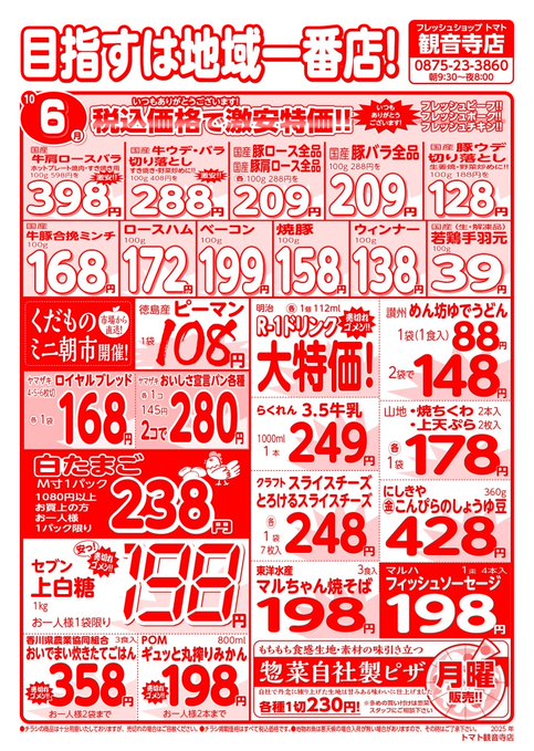 10/2~10/8の広告 2025 10/01 チラシ最新!! 2025年10月1日 2025年9月30日 チラシ最新!! よかったらシェアしてね! URLをコピーしました! URLをコピーしました! 惣菜注文 10/9~10/15の広告 この記事を書いた人 fs-tomato 関連記事 10/9~10/15の広告 2025年10月8日