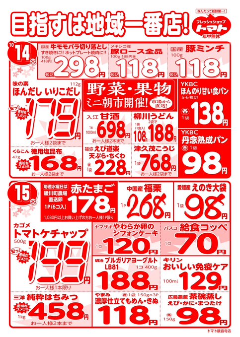 なんたって新鮮第一! 青魚・肉・野菜・惣菜・弁当・オードブル
