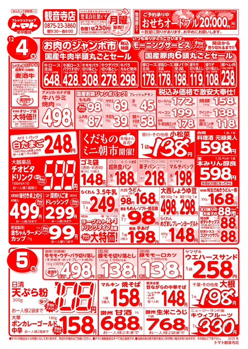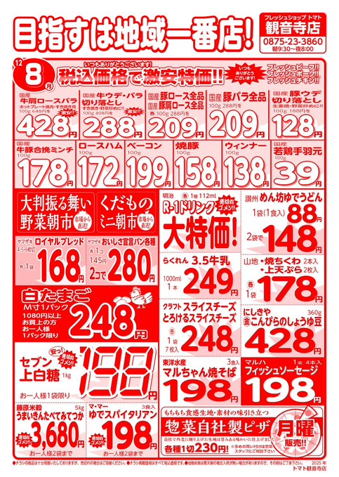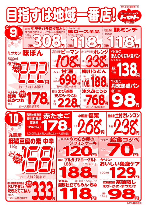 12/4~12/10の広告 2025 12/03 チラシ最新!! 2025年12月3日 2025年12月2日 チラシ最新!! よかったらシェアしてね! URLをコピーしました! URLをコピーしました! 12月の予定 この記事を書いた人 fs-tomato 関連記事 11/27~12/3の広告 2025年11月26日