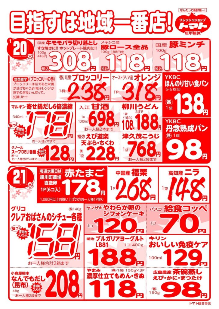 1/15~1/21の広告 2026 1/14 チラシ最新!! 2026年1月14日 2026年1月14日 チラシ最新!! よかったらシェアしてね! URLをコピーしました! URLをコピーしました! 1/8~1/14の広告 この記事を書いた人 fs-tomato 関連記事 1/8~1/14の広告 2026年1月7日