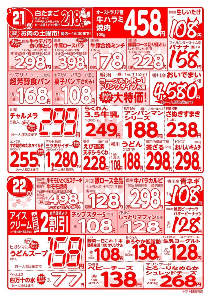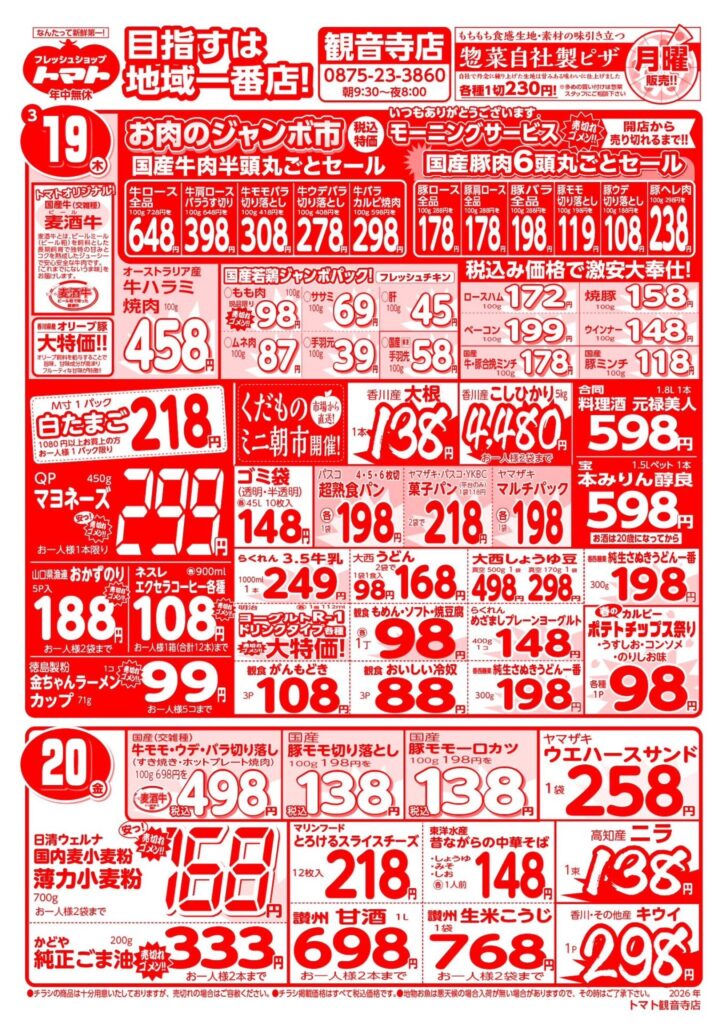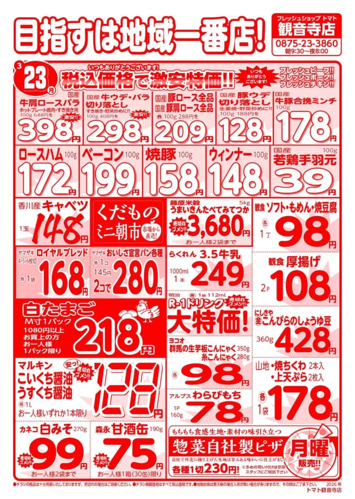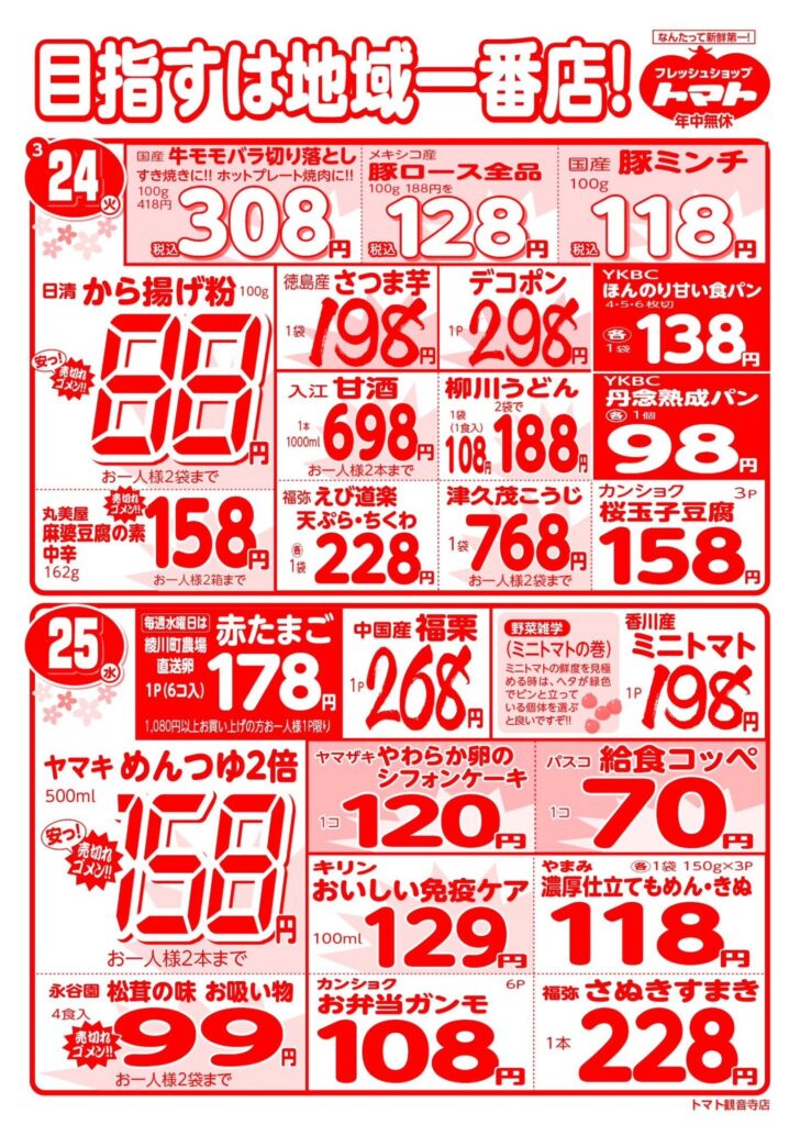 3/19~3/25の広告 2026 3/18 チラシ最新!! 2026年3月18日 2026年3月18日 チラシ最新!! よかったらシェアしてね! URLをコピーしました! URLをコピーしました! 3/12~3/18の広告 この記事を書いた人 fs-tomato 関連記事 3/12~3/18の広告 2026年3月11日